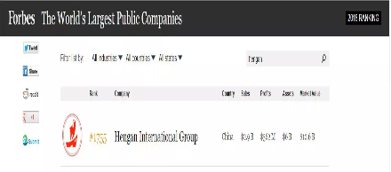 恒安国际上榜《福布斯》 “全球上市公司2000强”