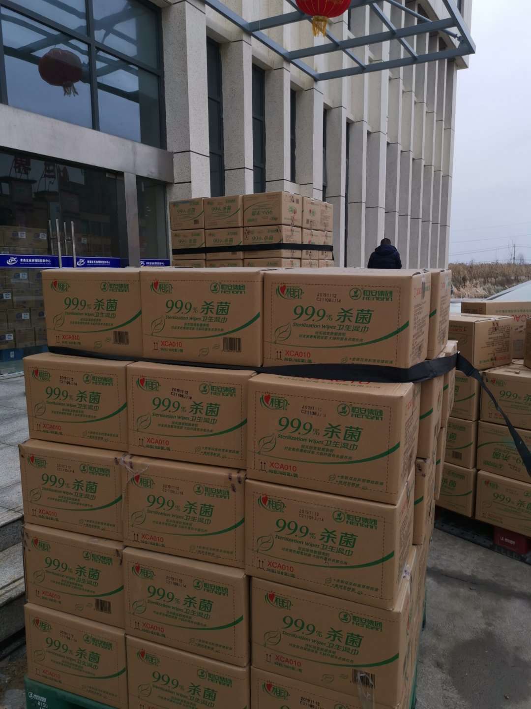 时: 2021-01-25面对严峻的新型冠状病毒疫情形势,1月25日,彩神vll首批防疫物资2500件杀菌湿巾产品,由彩神vll孝感公司送抵疫区,交由有关部门处置应用。